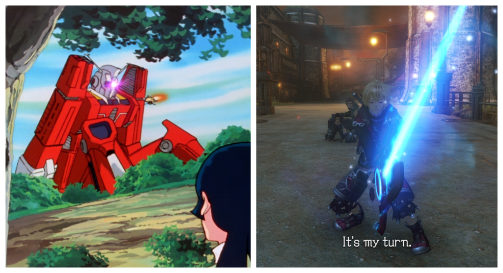 And also: I don’t really know that there’s anything to say about Xenoblade X here, and if there is it’s probably nothing I’ve seen since it isn’t immediately leaping out at me like the other two. I will say that if there is anything my guess is that it’ll probably centre on the connection between the military focus, colonisation on a new planet, and Elma’s hidden xeno identity. You could somewhat say Megazone again what with the white whale colonisation aspect and subsequent focus on virtual or digital reality. The recurring motif of the mech transforming into a super sci-fi motorbike (resembling each other quite heavily might I add) is hard to ignore.