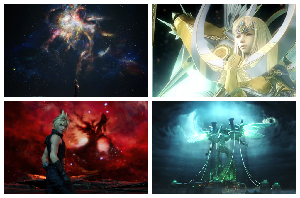 Sometime last year I had made that little thing detailing how and why I’m not sold on this ‘time loop’ theory that dominates Remake discussion. If we put these additional theories aside for the moment and return to the product in its released form, I believe that there are two specific points at which it had the opportunity to establish itself as a sequel. Had One-Winged Angel Rebirth elected to use the lyrics from the film rendition of the song, then I would have accepted that as concrete proof of Sephiroth being a continued existence somehow crossing the border of an in-universe loop between Dirge and Remake. Yet that idea does not come to fruition. For the second possibility, I believe that had Zacl displayed the gold-plated Buster Sword seen across the Compilation then there would be no shred of doubt that the complete Compilation preceded the new game. However again, he carries the Remake edition of the sword. If this new telling did have that old stuff in the in-setting background, then those moments would have been where it was shown. Yet it did not, and so I would still like to say that I’m not convinced of this claim that Remake is occurring after a timeloop and with knowledge of the original timeline, since I don’t know how that can possibly function in the Final Fantasy VII universe. But on a second playthrough I guess I would say that I just don’t know. I don’t have a solid grasp on what the narrative is doing right now. Maybe if they relate it back to Minerva it could have an excuse, like perhaps there were unseen aftershocks from the Omega Weapon’s awakening in Dirge of Cerberus and the goddess saw fit to try and fix it by reversing the flow of the Lifestream or something. This is currently my only good working theory as to how a rebuild-sequel is possible. What’s integral to note for this suggestion is that the timeline mechanics, at their deepest displayed level, don’t centre on Aerith or Sephiroth. Rather it’s that everything converges upon the Edge of Creation scene. That is where Sephiroth finally pulls back the curtain to reveal his intent to alter destiny, by issuing a challenge to the great beyond. He stares down the universe and he says “No. Not yet.” And in that event, I find the important takeaway is not actually Sephiroth’s “seven seconds til the end” speech, but rather the two nebulas that the scene lingers on. Particularly the white one is what Sephiroth threatens to oppose, and Cloud ends the scene perturbed by their presence. “Seven seconds til the end” is the relevant character plot, but I believe the symbolism is the way in which this scene actually implicates the setting. I really do feel that these have to be metaphors for divine beings, and the white one, I suppose, can then only be Minerva. The draconic shape with large shoulders in the red one could be hinting at the Omega Weapon, but I wouldn’t say there’s actually enough information present yet to fully stand by either of those claims. If this were a Dissidia title those would just be Cosmos and Chaos, but Chaos in the Final Fantasy VII universe is only Vincent’s proto-materia transformation. It doesn’t have a Shinryu either. The setting doesn’t have any force in place opposite to its goddess.