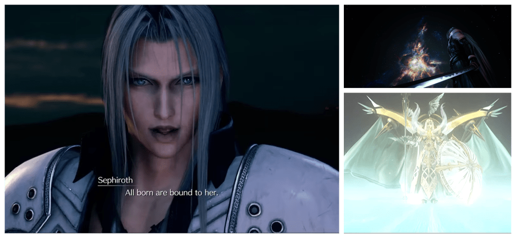 You know what, maybe with this they’re even addressing those concerns I raised about Sephiroth’s deification earlier. Instead of having his notion of god coming totally out of left field, this could just be them rewriting it so they’re now using the god they do have. And then perhaps because the design doesn’t really work in the action-oriented 3D space of Remake, and the design seen when they elected to use him in Dissidia NT, this could mean that when we eventually reach Safer Sephiroth his character design could potentially be replacing the original, gigantic wings with elements of Minerva’s armour.