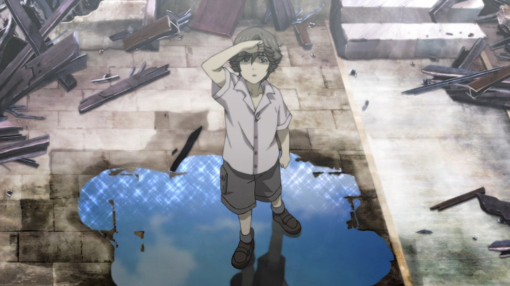 But put Remake back to sleep for now because it’ll be like 500 years before the last game is reached, yet we’ve already seen the Jenova War reach its conclusion long ago. Sephiroth was felled and the characters closed out that chapter in their lives. But Meteor still rained down, and when the Lifestream itself had angrily tore from the earth to intercept it that brought a curse of its own. Certainly without its intervention the human race would have perished, but that isn’t the same thing as it deliberately saving them. The planet had protected itself. Nothing more. Before dissipating it had massively shifted the terrain to impair trade and communication, and sowed the seeds for the geostigma pandemic. Considering the nuclear imagery of mako, perhaps to be understood as symbolic implementation of radiation poisoning. It was a hope laced with ruin, because maybe the planet didn’t care about them that much after all. Conceptually (and perhaps even literally if we consider Minerva’s presence) a god had been roused, and what it desired was only to shut up those who were pestering it. Midgar crumbles beneath its weight. Shinra’s kingdom collapses. With the conqueror suddenly now vanished, society is thrown into total disarray. Life around the world unequivocally changes in an instant. The heroes understood what happened and why, so they’re afforded some kind of advantage in the new world. But most of the populace is left scared and confused. It’s thus incredibly valuable to receive this kind of side-story, viewing the events of the main game from the perspective of an unrelated bystander. The anime depiction of Meteorfall is terrifying, reinforcing the ambiguity of Final Fantasy VII’s resolution. You feel more strongly than ever that the main conflict was, ultimately, just a drop of water in a much larger stream. That when the planet rouses the Lifestream to attack Meteor, it does so truly without care for humanity.