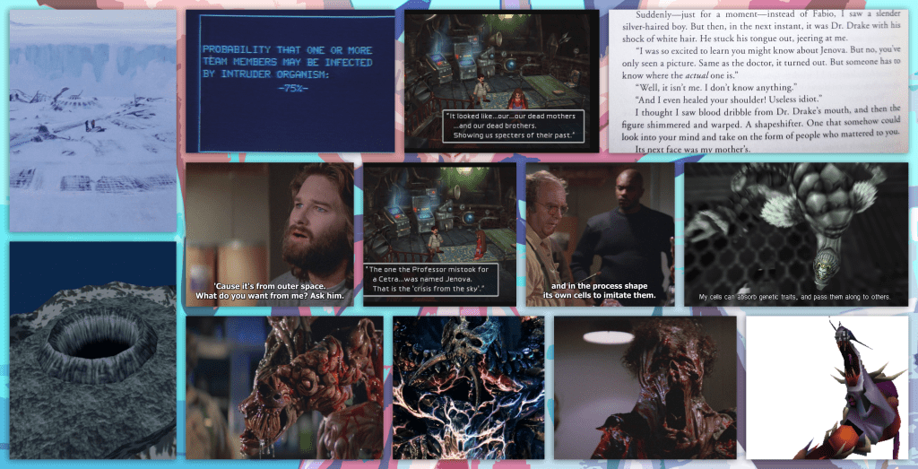 Yet the part that leaves the biggest impact on me was neither the protagonist nor the Turks, but rather someone I never would have expected to say positive things about. Kadaj. His razing of the Icicle Inn in the finale was a gripping acknowledgement of Jenova’s cinematic roots. The grotesque, shapeshifting alien Jenova was unapologetically borrowed from John Carpenter’s The Thing (1982). It’s afforded a bit more grandeur but is essentially just the same creature in origin, design and function. A transforming alien that crashed into the arctic in ancient times and when unsealed it attempts to destroy civilisation through weaponised paranoia.