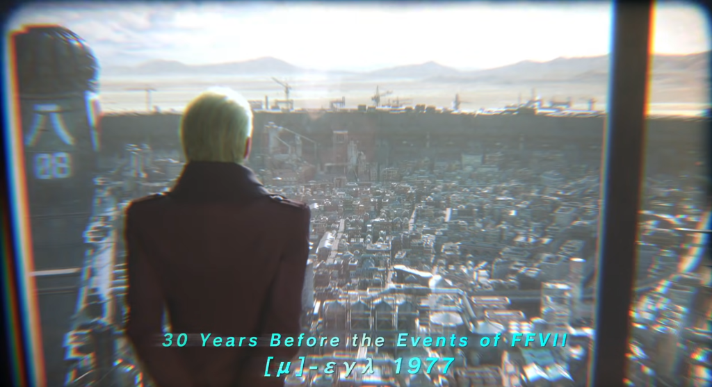 In the full timeline of Final Fantasy VII, the earliest parts of its history are the Final Fantasy X games and the recently-released First Soldier. However as expected the Spira stories are almost entirely irrelevant to Gaia so I would never classify them as part of the Compilation experience. The latter then becomes the start point. It’s a very brief backstory before launching into the modern FFVII era though, since to my knowledge the only story content in First Soldier is the opening cutscene. I actually don’t dislike the idea of a FFVII battle royale at all since if it’s solid enough then these brand spinoffs often make for interesting Youtube content to watch, and it seems like a good place for them to redeem Dirge of Cerberus’ action gameplay. But online games like that aren’t really in my area of interests, so I quickly watched the intro without ever downloading it. Being that it’s only a 3 minute video clip there isn’t much to engage with, but it is neat seeing visual of Jenova’s excavation, and subsequently Hollander and Gillian’s presence in the early Jenova Project under Hojo and Lucrecia. I think my favourite part of this clip is the glimpse of President Shinra in his younger years where even from the back it’s visible how much his son resembles him. I’ve always loved how Final Fantasy VII details the characters’ families instead of just letting them sprout as character concepts in a void. It’s interesting to think about the implication of, like, Aerith Faremis or Sephiroth Crescent.