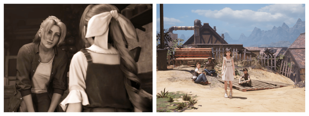 The second half of her story follows on from the Nibelheim Incident. After all this time with the character having such an obvious void in her personal history, it has finally been documented how Tifa makes her way to Midgar after the catastrophe. The juxtaposition between her airy home life and the immense poverty she was thrust into after Sephiroth burnt down her town and killed everyone she knew and loved is heartbreaking, but an incredible part of her journey. How the cast actually congregate there has always been an enigma. Even for the centre-most character Cloud there’s still an unexplained few weeks between Crisis Core and FFVII where Zack’s persona creeps in and he makes the conscious decision to alter his SOLDIER outfit. That one remains a mystery for now, but Traces of Two Pasts does make an effort to introduce whichever relevant characters it can. It tells us that Zangan had ferried her to a clinic in the slum, and in the ensuing years of poverty a series of coincidences with Marle at the clinic would lead her to Jessie, Barret and eventually AVALANCHE.
