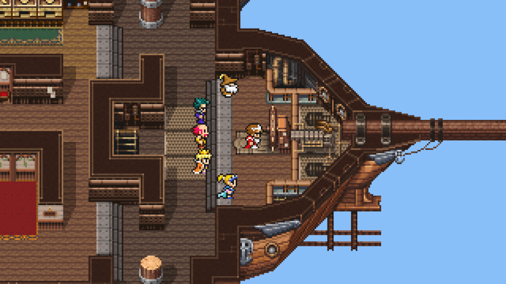 With this being the first time FFIII was localised in a form reminiscent of its original style, this was the Pixel Remaster I was most anticipating. However unlike the prior two games, I can’t say this rose to the occasion. “Let down” is not quite how I would put it, but rather that I found it shockingly nondescript. There are still a handful of powerful moments in the journey – particularly the sense of foreboding mystery that arises from leaving the floating island and being greeted by a totally flooded world. But on the whole the story felt lacking in presence. Particularly, I felt that they took too much liberty with player assumption. Events and characters tend to take a running start with a critical lack of introduction. Why am I doing this? Where did I learn I needed to? Why do those guys already understand my goal? Either I was accidentally and persistently sequence-breaking, or the game just wasn’t explaining itself properly. The characters talk more yet are less memorable than Garland and Firion. Resulting from this, compared to most other entries in the series I too find myself without much to say. It’s a necessary breather after the experimental second game, maybe? In writing and structure it feels like it’s shied away from the ambition that the second game had built itself upon, but in the long run perhaps it was good for Final Fantasy to have taken its time to establish a core status quo here. It’s clearly an important piece for the franchise since there are notable references carried forward. Cloud Smiles being adapted from an FFIII tracks is something I was aware of, but not which one specifically. However the first time you set foot in Amur that familiar melody immediately washes over you. Beyond the franchise, the victory lap that marks farewell to the game is enacted once again in Chrono Trigger. The lengthy miniaturized sections and the way the party call for aid before the final battle are things that probably went on to influence Earthbound. One of the most interesting things about finally tackling the earliest Final Fantasy titles is noting just how influential each new game was, and III does not slow down in that regard. It’s a very visible step in the franchise’s growing identity.