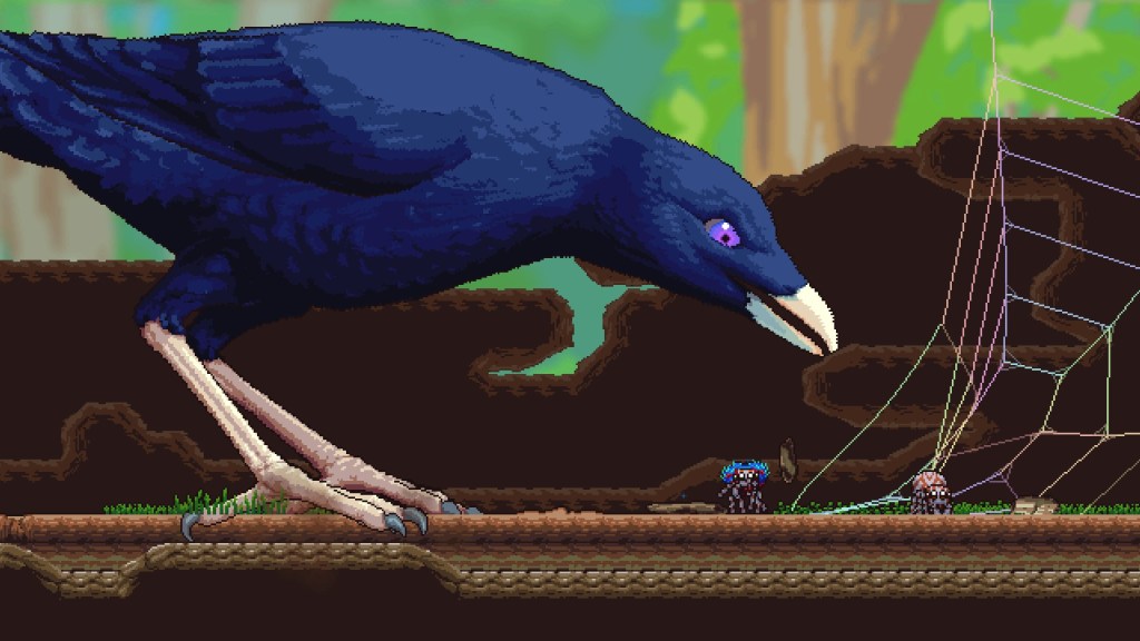 I can play a video game with a satin bowerbird in it this is awesome. There is a satin bowerbird boss theme even. Short, but quite enjoyable. I always love seeing representations of Australia in media so the gum trees, huntsmans and redbacks were all a bit of a spectacle. The web-swinging and bridge-building made movement feel very smooth, though level design felt fairly aimless across the board and puzzles were an annoyance more often than not. Nonetheless, it’s a cute little game.
