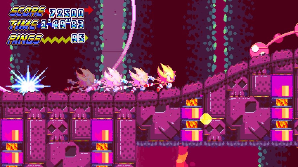Incredible, incredible game. The active experience is Classic Sonic played to its full potential thanks to the vibrant artwork and funky music, and unlike Before/After the Sequel or Time Twisted it actually manages to successfully recreate the physics from the Genesis trilogy. No random spots of tryhard edge as often shows up in other fangames either, just pure, uninterrupted Sonic fun; captivating with a confidence in its expressive visual design, characters and cinematic platforming levels. The level design isn’t flawless since it can be a bit too inactive at times (though it is also worth acknowledging that 2D Sonic expects you to replay it a minimum of 3+ times to feel out the level pathing), but compared to a lot of other Sonic fangames it still feels natural, both in levels and in the character handling. This series lives and dies by the physics, so that was such a welcome surprise. Because Sonic isn’t a block platformer like Mario or Kirby, but rather about a streamlined interaction with slopes and gameplay fluency (a ‘pinball platformer’), Sonic’s 2D games are really the sum of their parts where if one element is even slightly out of whack it throws off the whole gameplay experience. You could have a super solid fangame but then see that Sonic accelerates a touch too fast or jumps too high and that’s enough to compromise it. But Fallen Star was shockingly high quality across the board.