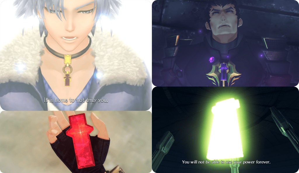 Future Redeemed, in a pretty cool move, validates both the red/blue of the XC1 gods and the purple/green of the XC2 Aegis. Here I posited that Definitive Edition simply didn’t recolour Zanza and Meyneth’s ether as it would completely break that game’s aesthetic. But that claim was perhaps too centred on Pneuma and Logos being the norm rather than the exception. We’ve now seen that when interlinking Glimmer and Nikol glow with the same red and blue power. So a distinction to now note would be that Logos and Pneuma are not the source of Animus and Anima in Xenoblade’s setting, but just the foremost devices built to harness and refine that existing energy. This is to say nothing of the potential that Xenoblade now be linked in lore to Xenosaga, where this colour scheme of Animus and Anima was originally seen.
