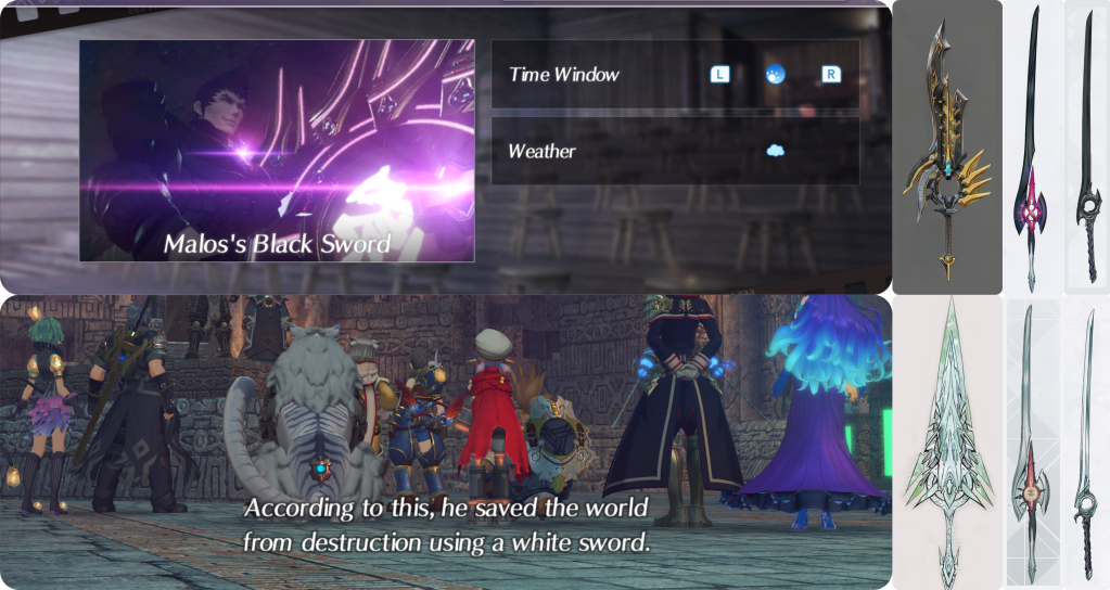 Malos’ black sword is well fascinating to think upon. The Monado finally appears in this game and it’s in the hands of its biggest anarchist. Such a bold move, predicated on an expectation that you will be recognising it and freaking out at every revelation from that point onward. With this one, there’s no room for confusion. Malos uses a bunch of Monado Arts, and the Alrest Record plainly states it to be so. Its counterpart in this chapter though is something which has been a constant source of discourse, whether the Tertiary Sword is to be considered a Monado or not. In my excessive amount of replays for these two games, and my understanding of the setting based on the outer context of Xenogears and Xenosaga which I looked through in a blog post, I would enter myself into this arena to say that it has to be. Were it not so then I’m not sure I actually understand how Xenoblade works. Originally I was of the stance that Malos received a Monado and Pneuma is granted Vision, with each core presumed subservient to Ontos in the original Trinity Processor scheme and therefore only having half the capacity of Alvis. And I do agree that is still the safe explanation, because it’s the one where you don’t have to spend half an hour justifying it by breaking the camera and pulling story examples from all corners of the franchise. That not one piece of documentation available calls the third sword a Monado is a hard wall to steer away from. But I also – personally – myself – think that is just a boring interpretation. Because what is Xeno if not a franchise built specifically for cross-referencing and aligning niche lore elements to reveal a hidden pathway within the setting. The storyline will offer you majority of the necessary information, but then it wants you to take responsibility for solving how these pieces slot together. And I want it to be a Monado. Xenoblade’s storytelling is simply a lot cooler to me that way.