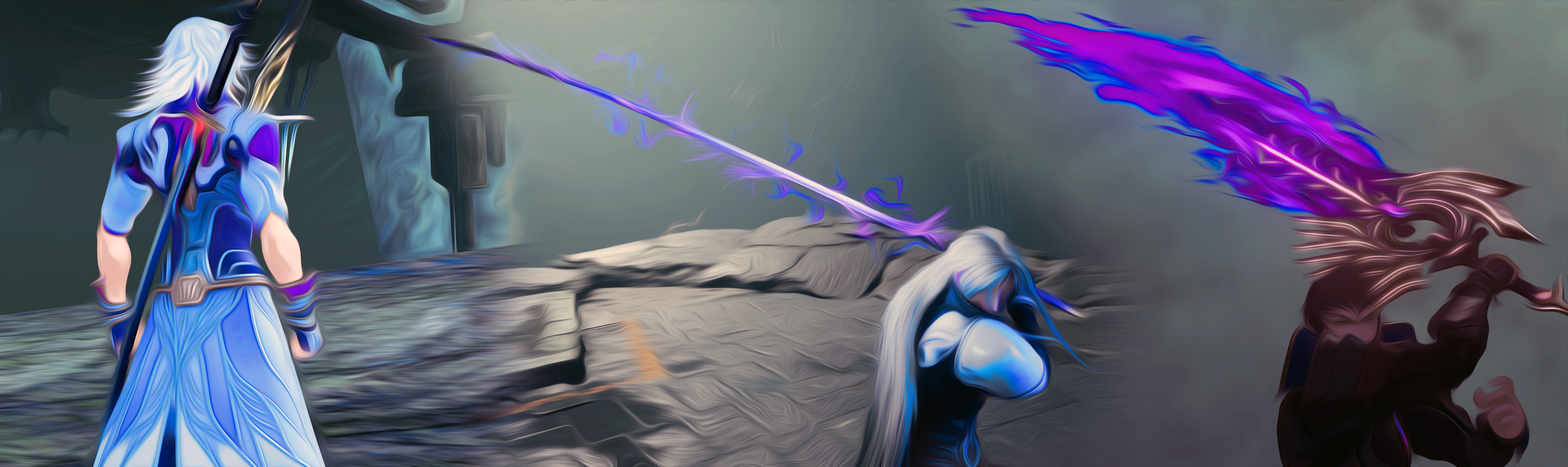 Quite literally the black and white elements of Sephiroth’s colour scheme split out into two distinct characters who thus each embody half of his presentation.