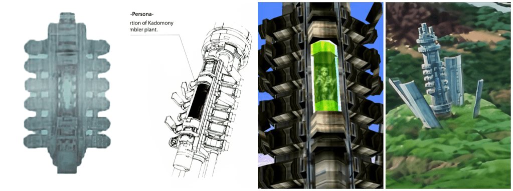That’s not to say that there aren’t any differences. Obviously there are since no matter how much Xenogears is still the main plot and lore framework that its successors adapt from, Xenogears is not Xenosaga is not Xenoblade. But most of the differences I see are actually just to do with the differing physical dimensions of the two computers. So I’d also like to pull aside here and discuss how the actual construction of them differs. This whole machine that sits inside the eye of the Zohar is the Kadomony biological quantum computer. The fullerene supercomputer must just refer to the entire case and its internal circuitry, most likely congregating in the larger sections on the top and bottom. The pod in the middle is the Persona molecular assembly plant, and the woman inside is akin to a biological CPU that the Persona system assembled so that it could also have a human brain to process emotional queries, supporting the logical calculations of its supercomputer components. However this human was originally without its own personality or deliberation, instead connecting to a set of 24 gendered bio-computer cores called Animus and Anima which are seated as pairs in the twelve compartments on its side. Persona uses its organic brain to evaluate their deliberations and relay a consensus to Kadomony, which then gets a second round of evaluation against the supercomputer’s logical answers.