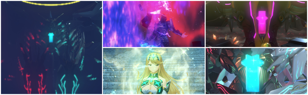 Animus and Anima in Xenogears are twelve sets of male and female processors for its quantum biocomputer. Whereas in Xenosaga, Anima is a destructive cosmic power capable of shattering dimensional space, and Animus is the power that counteracts it. Both of these forces incarnate into a single human each, who’ve also coincidentally had their genders swapped for legal distinction, so Anima is contained within the male Yeshua and Animus is the female Mary. Destructive male divinity who glows blue in a Xeno game – definitely Zanza, gentle female divinity who glows red in a Xeno game – definitely Meyneth. Therefore, for this and many other reasons, it is also quite possible that Animus and Anima may simply exist in Xenoblade as universal energy concepts reminiscent of how they were in Xenosaga, and that Pneuma and Logos are the names specifically for these two objects that process them into their own usable energy. Combining the ideas of the gendered bio-elements from Xenogears and the cosmic alignment from Xenosaga, much like many other aspects of Xenoblade which are also a merging of its two predecessors. Zanza and Meyneth fit within the Kadomony framework as bio-elements Animus and Anima, or Monado elements Logos and Pneuma, but they also borrow the coloured glow that was associated with the powers of cosmic Animus and Anima in Xenosaga III. Zanza, Shulk, and Niko use blue Animus power, Meyneth, Fiora and Glimmer use red Anima power. But Malos and Mythra would have access to these energies tuned to the wavelength of Logos and Pneuma, which is reddish purple for the former and either green or gold for the latter depending on what form she’s in.