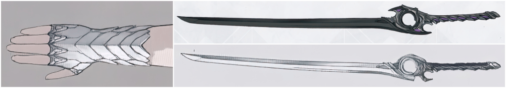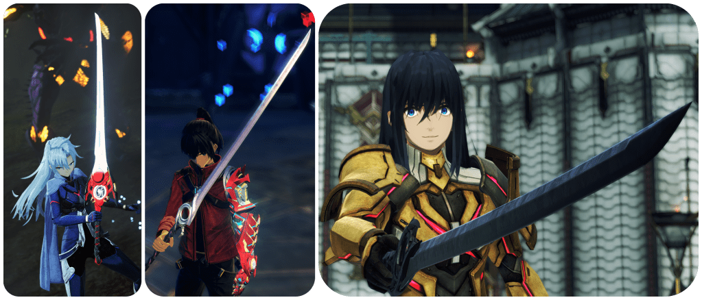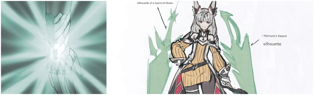 The only actual consistency between those in question is that they’re red gloves with some kind of Trinity Processor motif on them which, okay, fair enough, but that’s seriously where the similarities end. Matthew’s is only just a few bits of Blade attached on top of his silver Origin Metal weapon, which just bugger off elsewhere when he unseals the underlying fists. Whereas Noah’s is the whole Veiled Sword forming into armour after unsealing the underlying sword, using the Blade’s golden parts as the trunk. Matthew has two short gloves with open fingers, Noah has the larger enclosed gauntlet from a suit of armour. One’s a red fist when it’s inactive, one’s a red fist after being activated. The functions don’t match, the shape doesn’t match at all, and the blue ether on Noah’s is totally different from the gold and green of Matthew’s. While Noah’s is honestly closer to how Pneuma’s turquoise ether looked in Xenoblade 2’s art style, it doesn’t conform to how Xenoblade 3 represents it in the Fists of the End or Firelight Swords. From a design perspective the lines just aren’t connecting for me, because it means you have an Origin Metal weapon with a red Blade layered over it as a sheath, then you discard that first red Blade and turn the first Origin Metal weapon into a red Blade as a sheath for a second Origin Metal weapon. I don’t think Noah has Pyra and Mythra in his Veiled Sword because that doesn’t fit with my understanding of the setting or lore, and if that were the case then Takahashi had ample opportunity to mention it in this interview section I keep referring back to. But he doesn’t. So I’m just mentioning it for consideration because I know a lot of other people in the mainstream discourse are fond of the idea. Me personally, I would have sooner suggested that Nia inherited Pyra and Mythra’s metal after Matthew’s passing as an explanation for her Anima Sword. The party from Future Redeemed are the first group to successfully manifest into Ouroboros, so that particular Origin Metal glove would he been irreplaceable to Nia’s research.