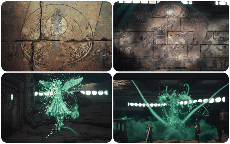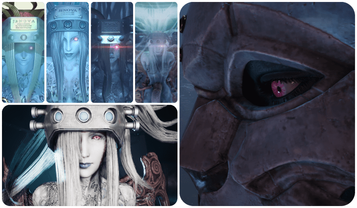 Jenova had approached the Cetra in their own forms to manipulate their society (with the Shadowblood Queen being one particularly noteworthy incarnation), but eventually they clued on to her schemes and waged a vicious war against the alien monster, which possibly culminated in Shiva being summoned to freeze Jenova inside of the northern glaciers. This is described in OG FFVII, referenced in the Shiva summon’s datalog, and displayed to us in Rebirth’s Hall of Murals.