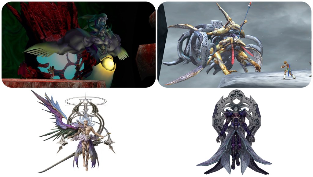 Hear me out – Bizarro Jecht and Safer Seymour. Just as you could consider Angeal Penance and Genesis Avatar to be their equivalents of the Jenova-fuelled Bizarro Sephiroth transformation, Braska’s Final Aeon has the exact same design structure. It even has wings.