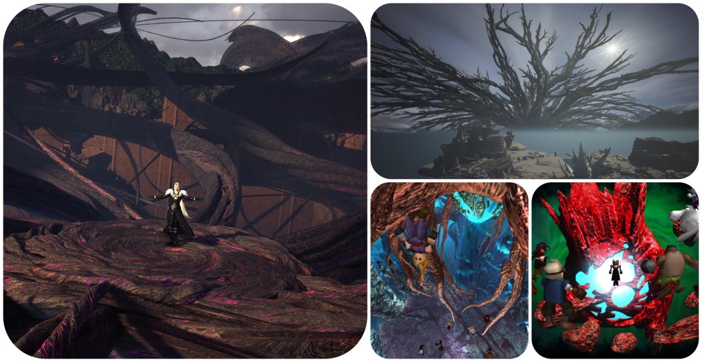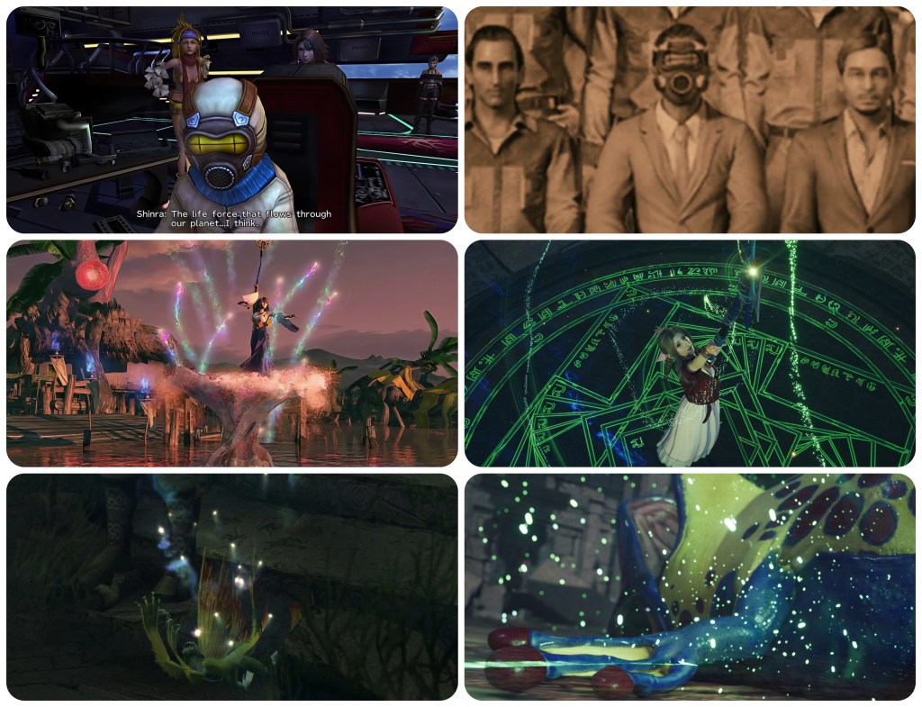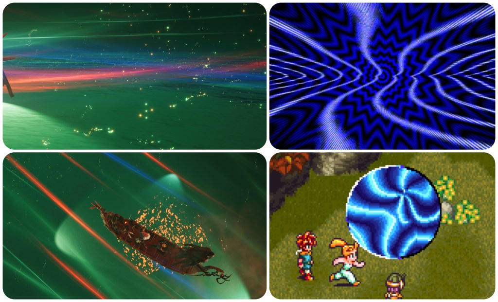 The root concept for the Lifestream is found here in Chrono Trigger as well. In order to combat the world parasite, the party locate these circular gates through which they travel back and forward in time. Sephiroth in Rebirth has also shown off similar looking entry points into alternate world lines. Robo muses that the gates must be the gift of some god, since the 400 years he spent tending to a forest has convinced him of higher purpose. While never clarified ingame, the most likely candidate would be that The Entity is the consciousness of the planet itself, and this is confirmed in outside interviews. In which case, The Entity can just be described as that planet’s Lifestream, similar to Spira’s Farplane. The FFVII Remake series makes the two even more alike, as the Lifestream is now depicted as having greater influence over spacetime, and internal spaces with gates to access the various timelines.
