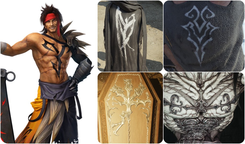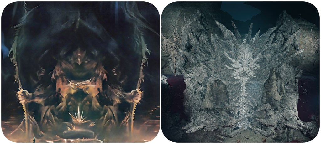 Here’s another decorative effigy which very lightly resembles Jenova’s Dreamweaver form. Note that the gap between the two masks in the middle almost give the impression of a big mid-body mouth, which is once again similar to a feature observed on Angeal Penance.