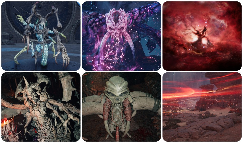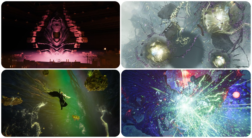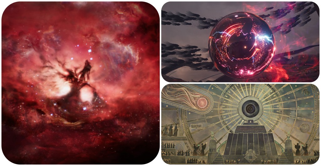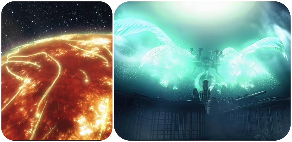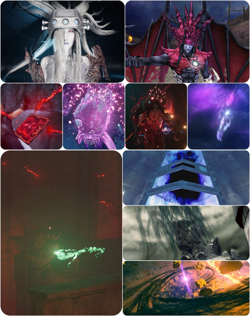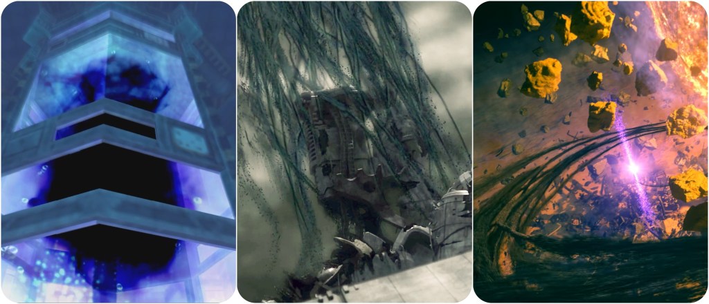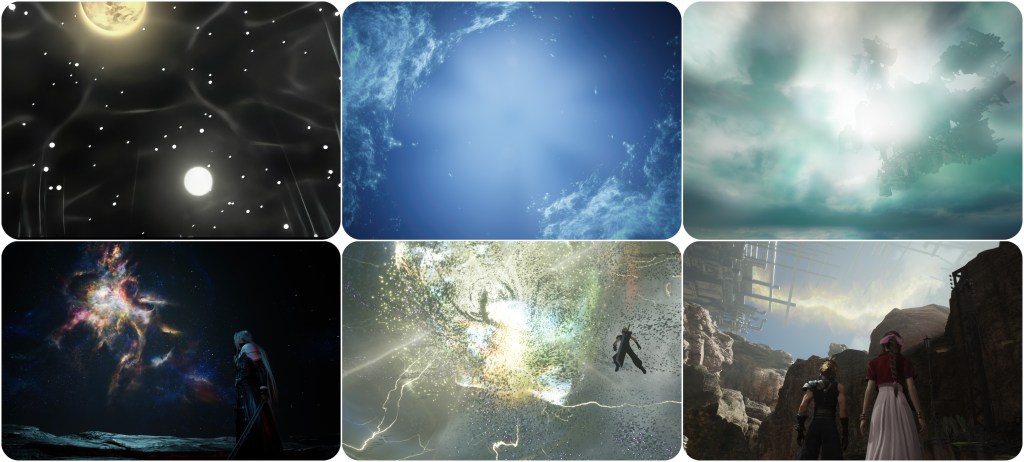 Beyond this though, the fact of the matter is that we just don’t know anything about Jenova. We don’t know what The Thing’s native species was, we don’t know what Lavos’ native species was, we’ll likely never know what Jenova’s native species was either. She’s a cosmic scourge that defies comprehension, the very notion of of a native form betrays her concept. As mentioned earlier, I think there’s reason to believe that what the meteorite brought to Gaia was not a bespoke body, but just cancerous alien cells which began propagating into one and then infecting others for its hivemind. Therefore, even Jenova SYNTHESIS cannot be considered her true form (despite the battle theme being named “Jenova Complete”) because Remake/Rebirth now show us that the Lifestream is somehow able to affect its own spacetime and fate on a localised, per-planet basis, rather than as an all-encompassing building block of the universe. 1997’s FFVII did already show us a discrete night sky with its own moon existing inside of the planet’s core, but that idea has been taken so much further now. Even the altar located just below the City of the Ancients seems to hold its own sky. The Temple of the Ancients hides yet another subdimension. The Edge of Creation, Path of Sephirot or alternate worlds are all dreams existing within Gaia’s own Lifestream.