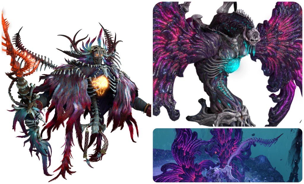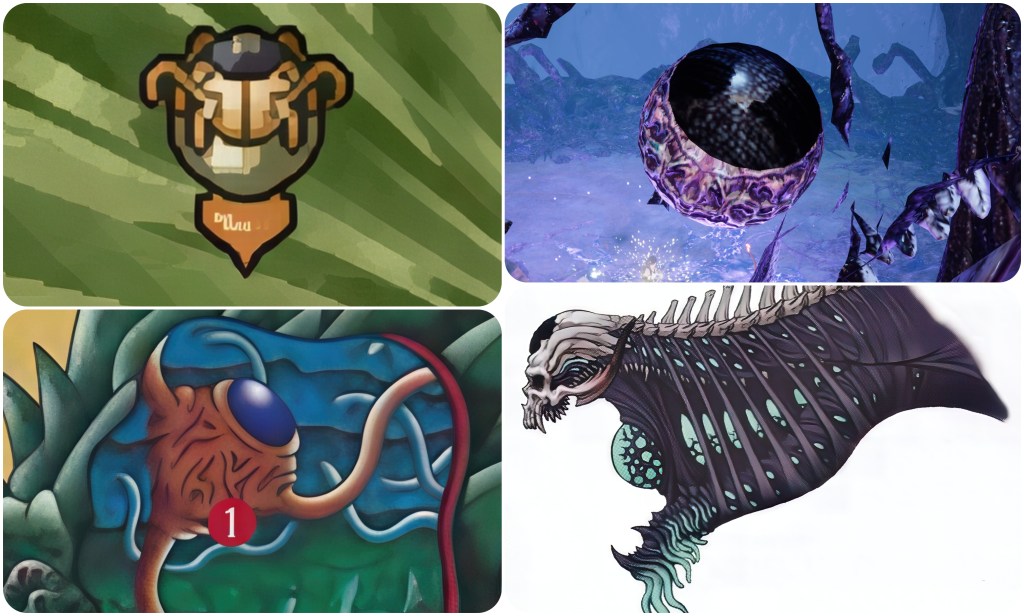 Out of these effigies, I feel that the one with the tail and insect appendages particularly resembles the Necrotic Entity mutation.