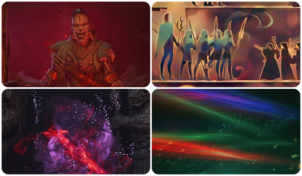 I’ve strayed pretty far from Cosmo Canyon at this point, basically just stitching together several other small blog posts I had drafted or published. In any case, this has been fun. I love free-camera tools and how they allow us to really pour over environmental details or abstract symbolics with a much keener eye. When I first managed to set up the freecam mod in the Xenoblade trilogy I lost countless hours inside of it. I’m sure I’ve probably spent a whole playthrough’s worth of time in Xenoblade 2 just snooping around in freecam for optimal discussion screenshots. A full playthrough of that, mind you, being between 60 and 80 hours. The fact that FFVII Rebirth’s PC port is compatible with the amazing Unreal Engine 4 Unlocker right out the gate was such a blessing for it. I’ve had so much fun taking the camera around to focus on things the game doesn’t particularly want me to. In conjunction with that, I think that my freecam experience permitting me to put together a piece such as this helps to visualise one key part of why I love the FFVII Remake games so much – the expanded lore implications found in every conversation throughout every location. If a game lets me make collages about it, that’s a sign of quality. When I made that Pneuma video it was my first exposure to freecam. That script was a little different than usual because it focused less on interpretation and more on using this mod to provide clear screenshots of details which where obfuscated during cutscenes, then further substantiating my suggestions with artbook scans. It was so much fun. Freecam has totally rewired how I approach my screenshot selection in discourse, stepping back into these worlds as a more active participant in the gamespace to sneak up close and engage in something along the lines of digital news photography. Being able to do this kind of fun activity in the world of Final Fantasy VII is unreal. I’ve never played Pokemon Snap or anything similar, but these days I kinda get the appeal of that concept. Photo mode really is a whole other side to a video game experience which allows you to engage with it in a totally different way. To be able to have these investigations into the imagery and history of the Final Fantasy VII setting at a level in league to the Xeno games is phenomenal, and so perfectly catered to me as an FFVII fan. I’m putting some things together in my mind, completely at a loss with others, writing one blog then leaving it as a draft to write another instead because I’ve remembered one line of dialogue or stumbled upon a couple of screenshots illustrating a point to the opposite, and I am loving it. The history of Jenova, Chaos and calamity that we can find hidden away in a village below Cosmo Canyon may not be all that integral to the plot, or to the trajectory of FFVII Remake moving forward, I’m not trying to like – epic part 3 FFVII Remake theory does the Gis is aliens and Black Materia revealed!?? – that’s not me and that’s not the Gi. But the things which you can piece together about the past, and how this may implicate the present, is so fascinating to uncover. While I may have just spent the last several hours talking in circles as I go through my messy lines of thinking, I do feel like I have a clearer understanding of FFVII’s world now, and it’s place in a potentially larger universe.