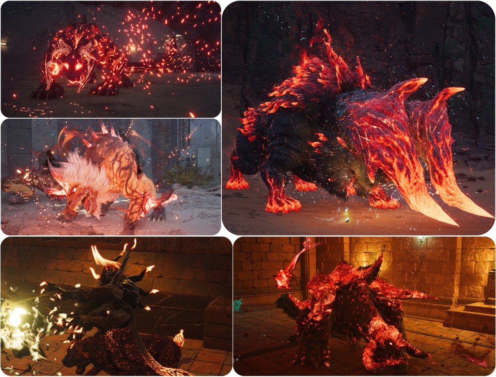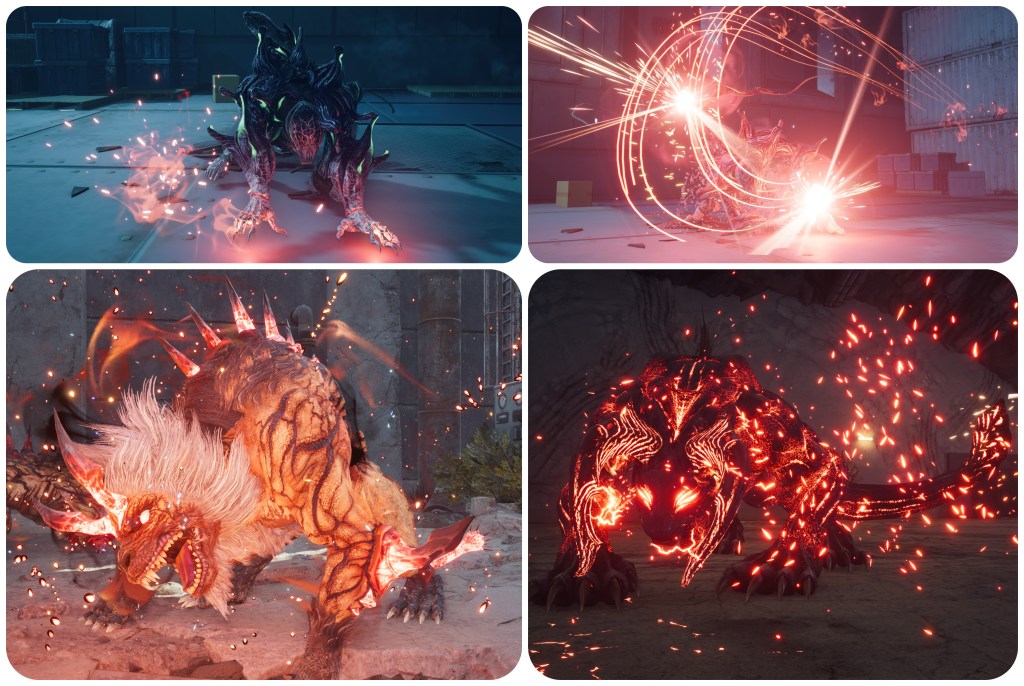 The visual effect of the Type-0 Behemoth and Cavestalkers, two of Hojo’s R&D monsters, is identical to the Irasceros when possessed by the Gi Spectres. Red particles flying all around, and a red glow that emanates out of the horns and spreads throughout the body. The Panthera Protector and Moss-Grown Adamantoise from the Temple of the Ancients also do something similar when powered up.