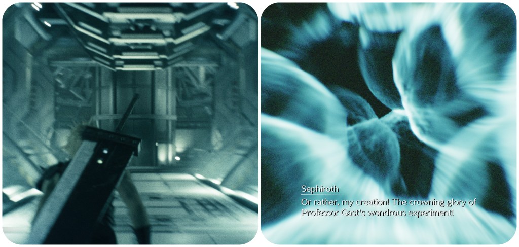 Rebirth, I would say, fixes this inconsistency a bit. While FFVII and Crisis Core both have Sephiroth expressing sadness that Gast had never told him anything about his birth, implying that he was quite personally familiar with Gast, Rebirth just has Sephiroth musing about how Hojo was an unworthy successor as the head of R&D. Then when Sephiroth goes mad on his final day in the basement there’s a wrath in his voice when he mocks himself as “the crowning glory of Professor Gast’s wondrous experiment”, not expressing a mournful, personal betrayal like FFVII’s depiction.