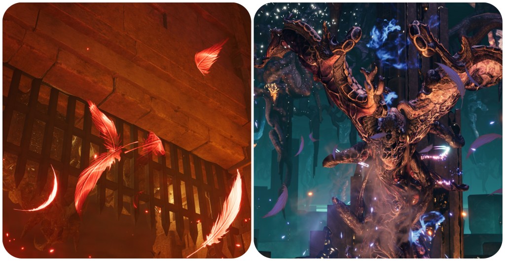The Gi Spectres have ethereal feathers that form around them. This is simply part of the revival spell, but does nonetheless call to mind how Jenova Dreamweaver emits ethereal purple feathers and Sephiroth is constantly shedding black.