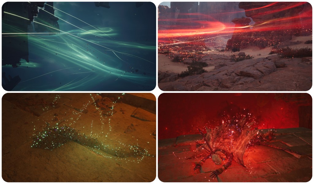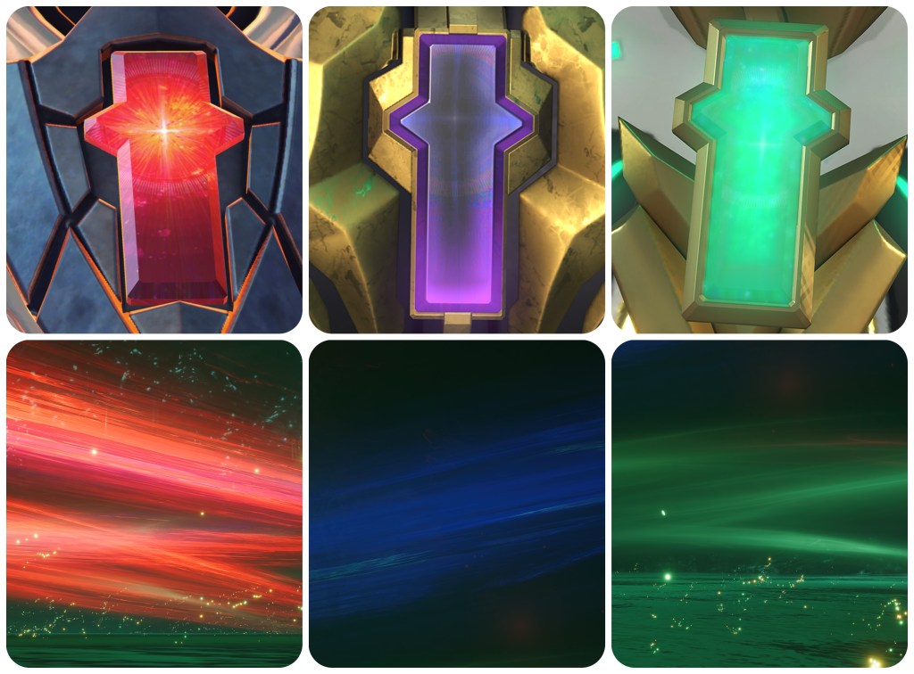 When rage, hatred or anything else prevents the dead from finding their way to the Farplane on their own, a Sending is used to move them there. Recall how I pointed out the presence of a scant few green Gi pyreflies in the Lake of Blood. The Gi are the Unsent, then we also have Aerith converting red to green through a Sending. I did notice that the 4th-dimensional tesseract thing in the Hall of Serenity has a green soul orb in it that resembles Gi Nattak’s Animus sphere more than it does Joker’s extracted Anima. Interacting with this is what then activates the red spirit particles that lead the party into the hallucinatory trials. That might be one visible instance of a converted Gi soul being utilised by the Cetra to access Jenova-like illusion powers.